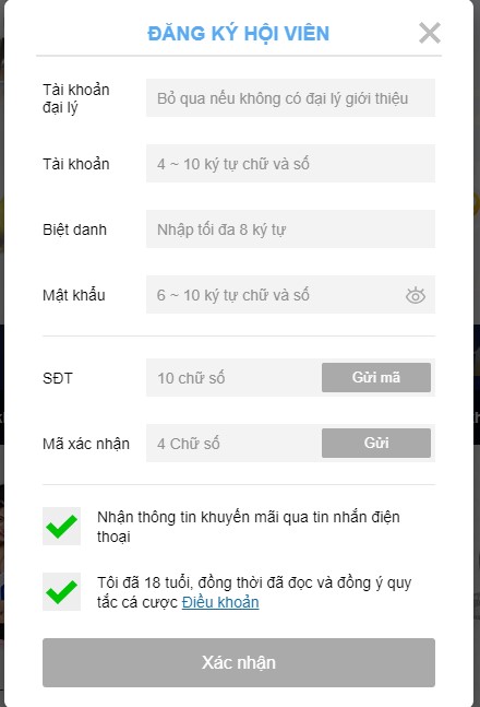 - Điền đầy đủ thông tin cá nhân required như tên đăng nhập, mật khẩu, số điện thoại,…